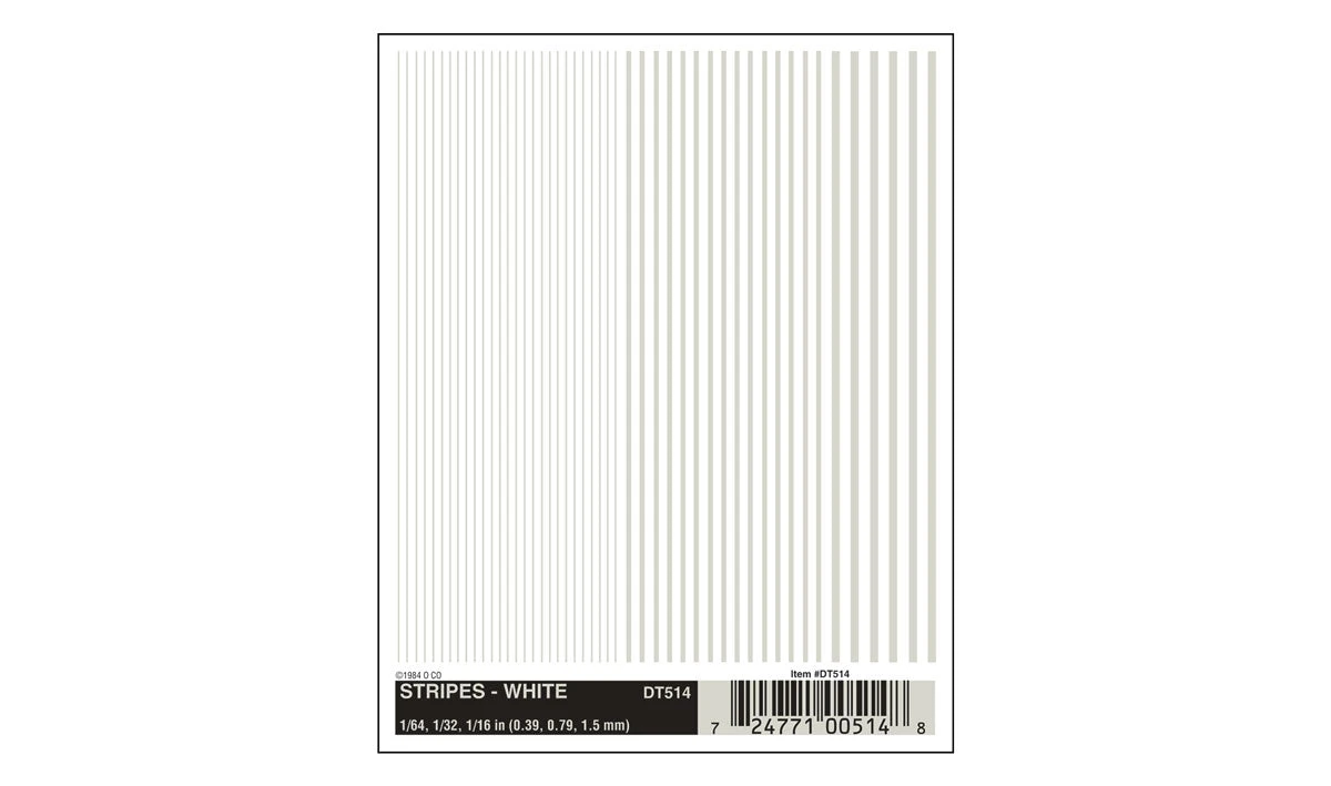 Woodland Scenics DT514 Dry Transfer Decals – Stripes, White